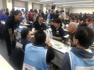 あいにくの雨天で、残念ながらレースは中止となってしまいましたが、屋内でアスリートと一緒に交流会(ゲーム大会)を行いました。